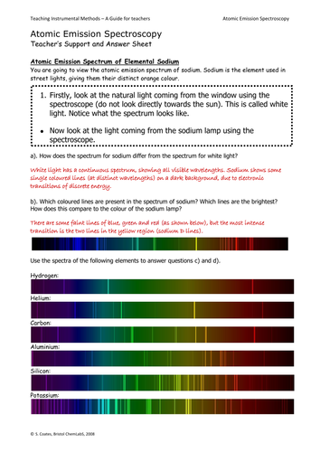 Atomic Absorption Spectrum Worksheet Emission Spectrum Spectroscopy